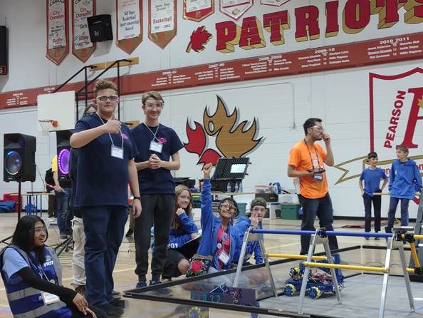 There were many exciting moments during this event: for one match they played against each other, for another match Team 2 played with the Crescent Heights Robotics Team, alongside one of the members from our club from last year!